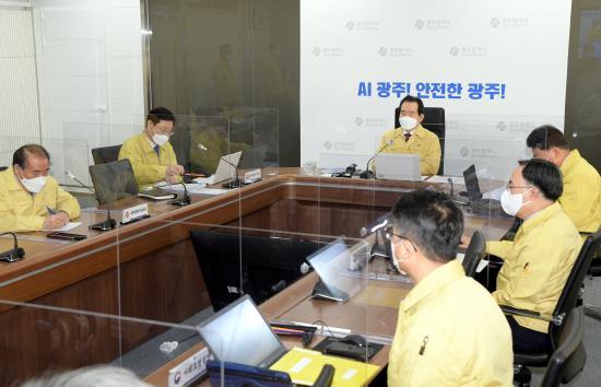 [¿¡ÄÚȯ°æÀϺ¸=°¼º´ë ±âÀÚ] À̿뼷 ±¤ÁÖ±¤¿ª½ÃÀåÀÌ 10ÀÏ ¿ÀÀü ½Ãû Àç³»óȲ½Ç¿¡¼ ±¹¹«ÃѸ® ÁÖÀç·Î ¿¸° Äڷγª19 ´ëÀÀ Áß¾ÓÀç³¾ÈÀü´ëÃ¥º»ºÎ ȸÀÇ¿¡ Âü¼®Çß´Ù.