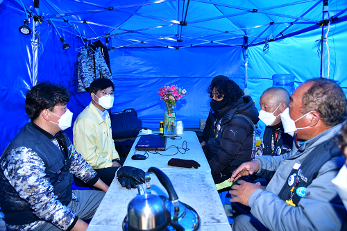 ÀÌ ³¯ º¯ ½ÃÀåÀº ÇöÀå¿¡¼ ³ëµ¿ÀÚµéÀ» ¸¸³ª ±× °£ÀÇ ÁøÇà°úÁ¤°ú ÇöÀç »óȲ µî¿¡ ´ëÇÑ ÀǰßÀ» °øÀ¯Çß´Ù. À̾î ÇÏ·ç »¡¸® ³ëµ¿ÀÚµéÀÌ ÀÏ»óÀ¸·Î µ¹¾Æ°¥ ¼ö ÀÖµµ·Ï ÃÖ¼±À» ´ÙÇÒ °ÍÀ̶ó¸ç ¼³ ¸íÀýÀ» Â÷µðÂù ¹Û¿¡¼ º¸³»¾ß ÇÏ´Â ¾ÈŸ±î¿òÀ» À§·ÎÇß´Ù.