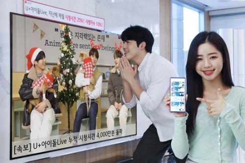[½Åµ¿¾Æ¹æ¼Û=¹Ú´ë¿µ ±âÀÚ] LGÀ¯Ç÷¯½º´Â ÀÚ»ç ¾ÆÀ̵¹ ÄÜÅÙÃ÷ Ç÷§Æû ¡®U+¾ÆÀ̵¹Live¡¯ÀÇ ´©Àû½Ãû ½Ã°£ÀÌ 4,000¸¸ºÐÀ» µ¹ÆÄÇß´Ù°í 4ÀÏ(¸ñ) ¹àÇû´Ù. 16ºÎÀÛ µå¶ó¸¶ 5¸¸Æí¿¡ ´ÞÇÏ´Â ½Ã°£ÀÌ´Ù.