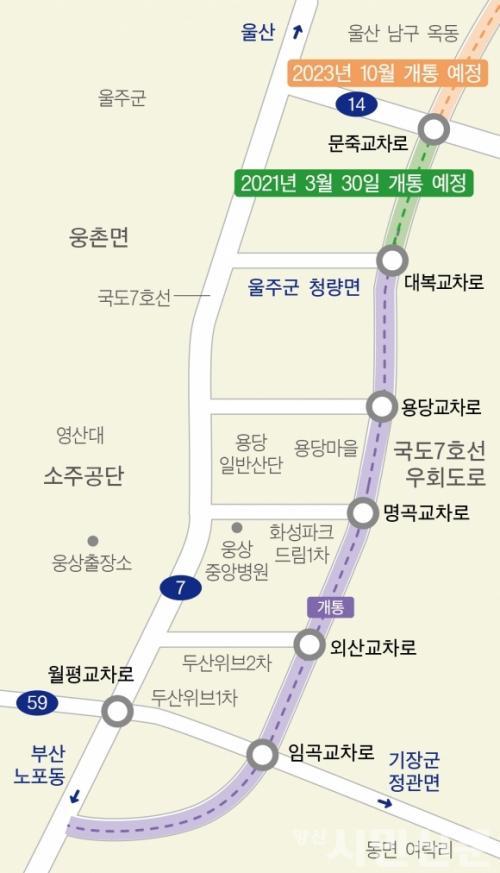 ºÎ»êÁö¹æ±¹Åä°ü¸®Ã»Àº ¾ç»ê ¿õ»ó~¿ï»ê ¹«°Å ±¸°£ 13.3km °¡¿îµ¥ ¿ïÁÖ±º ¿õÃ̸é(´ëº¹±³Â÷·Î)~û·®À¾(¹®Á×±³Â÷·Î) 4.9km ±¸°£¿¡ ´ëÇÑ °³Åë½ÄÀ» ¿À´Â 30ÀÏ ¿ÀÈÄ 5½Ã¿¡ ÁøÇàÇÒ ¿¹Á¤À̶ó°í ¹àÇû´Ù.