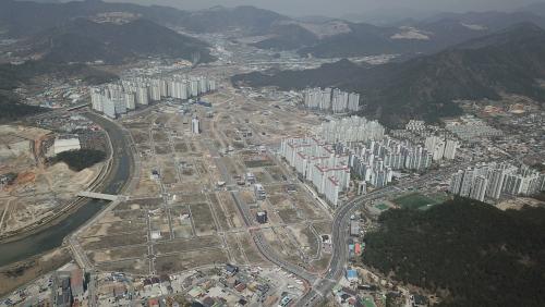 ÁÖÃ̼±ÃµÁö±¸ ³» ´ë±Ô¸ð ¾ÆÆÄÆ®´Â 4°³ ´ÜÁö·Î °èȹµÅ ÀÖÀ¸¸ç ÇöÀç 2°³ ´ÜÁö´Â ÀÔÁÖ¸¦ ¿Ï·áÇß°í ³ª¸ÓÁö 2°³ ´ÜÁö´Â °ø»ç ÁßÀÌ´Ù.