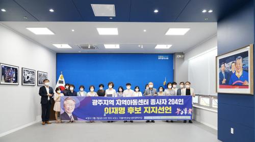 [¿¡ÄÚȯ°æÀϺ¸=±èÀçÂù±âÀÚ]±¤ÁÖÁö¿ª Áö¿ª¾Æµ¿¼¾ÅÍ Á¾»çÀÚ 204ÀÎÀÌ ¶æÀ» ¸ð¾Æ 3ÀÏ ¿ÀÀü 10½Ã ´õºÒ¾î¹ÎÁÖ´ç ±¤ÁÖ±¤¿ª½Ã´ç¿¡¼­ ¡®±¤ÁÖÁö¿ª Áö¿ª¾Æµ¿¼¾ÅÍ Á¾»çÀÚ 204ÀÎ ÀÌÀç¸íÈĺ¸ ÁöÁö¼±¾ð½Ä¡¯À» °¡Áö°í ÀÌÀç¸í ´õºÒ¾î¹ÎÁÖ´ç °æ¼±Èĺ¸¿¡ ´ëÇÑ °ø°³ÁöÁö¸¦ ¼±¾ðÇß´Ù.