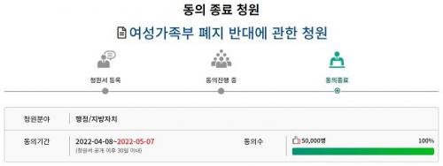 8ÀÏ ±¹È¸ ±¹¹Îµ¿ÀÇû¿ø ȨÆäÀÌÁö¸¦ º¸¸é Áö³´Þ 8ÀÏ ¿Ã¶ó¿Â ¡®¿©¼º°¡Á·ºÎ ÆóÁö ¹Ý´ë¿¡ °üÇÑ Ã»¿ø¡¯Àº ¸¶°¨ ÇÏ·ç ¾ÕµÐ ÀÌ´Þ 7ÀÏ 5¸¸¸íÀÇ µ¿ÀǸ¦ ¹Þ°í ÃÖÁ¾ Á¾·áµÆ´Ù.
