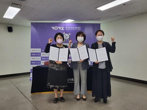 À̳¯ Çù¾à½Ä¿¡´Â Á¤Á¤¿Á °æ±âµµ¿©¼º°¡Á·Àç´Ü ´ëÇ¥ÀÌ»ç, Á¶µµÀÚ ºÎõ¿©¼ºÃ»¼Ò³âÀç´Ü Á¤Ã¥±âȹ½ÇÀå, ¾ÈÈ¿¹Ì ȼº½Ã¿©¼º°¡Á·Ã»¼Ò³âÀç´Ü ¿©¼ººñÀü¼¾ÅÍÀåÀÌ Âü¼®ÇØ ¾÷¹«Çù¾à¼¿¡ ¼¸íÇß½À´Ï´Ù.