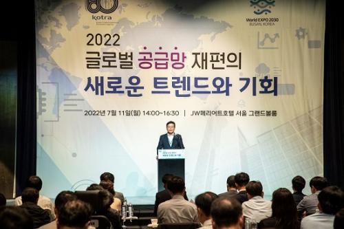 Á¤¿Ü¿µ KOTRA Çõ½Å¼ºÀ庻ºÎÀåÀº ¡°ÇöÀç ¿ì¸® ±â¾÷Àº ±Û·Î¹ú °ø±Þ¸ÁÀÇ ÀçÆí ¼Ó¿¡¼ ±âȸ¿Í À§±âÀÇ ±â·Î¿¡ ¼ÀÖ´Ù¡±¸ç ¡°KOTRA°¡ ±¹°¡ °æÁ¦¾Èº¸ÀÇ Ã·º´ÀÌ µÅ¼ ÇØ¿Ü °ø±Þ¸Á ¸ð´ÏÅ͸µ, ǰ¸ñº° ´ëü °ø±Þ¼± ¹ß±¼°ú ¼±Á¦ÀûÀÎ °ø±Þ¸ÁÀÇ »ó½Ã¿Í ±ä±Þ Áö¿øÃ¼°è¸¦ ±¸ÃàÇÏ´Â µî ´Ù¾çÇÑ °ø±Þ¸Á »ç¾÷À» ÅëÇØ ¿ì¸® ±â¾÷ÀÇ °ø±Þ¸Á ¾ÈÁ¤È¸¦ Áö¿øÇÒ ¼ö ÀÖµµ·Ï ÃÖ¼±ÀÇ ³ë·ÂÀ» Çϰڴ١±°í ¹àÇû´Ù.