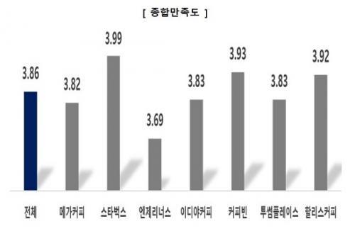 Á¶»ç´ë»ó 7°³ Ä¿ÇÇÀü¹®Á¡ÀÇ Á¾ÇÕ¸¸Á·µµ´Â Æò±Õ 3.86Á¡À̸ç, »ç¾÷ÀÚº°·Î´Â ½ºÅ¸¹÷½º°¡ 3.99Á¡À¸·Î °¡Àå ³ô¾Ò°í, ´ÙÀ½À¸·Î Ä¿ÇǺó(3.93Á¡), ÇÒ¸®½ºÄ¿ÇÇ(3.92Á¡), À̵ð¾ßÄ¿ÇÇ¡¤Åõ½æÇ÷¹À̽º(°¢ 3.83Á¡), ¸Þ°¡Ä¿ÇÇ(3.82Á¡), ¿£Á¦¸®³Ê½º(3.69Á¡) ¼øÀ̾ú´Ù. »óÀ§ ½ºÅ¸¹÷½º¿Í ÇÏÀ§ ¿£Á¦¸®³Ê½º ÀÌ¿Ü ¾÷ü´Â ÁßÀ§±Ç ±×·ìÀ¸·Î ºÐ·ùµÇ³ª ÁßÀ§ ±×·ì ¾÷üµéÀÇ Á¾ÇÕ¸¸Á·µµ´Â Åë°èÀûÀ¸·Î À¯ÀÇÇÑ Â÷À̰¡ ¾ø¾ú´Ù.