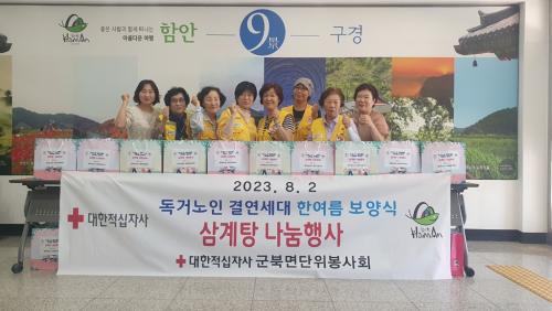 À̹ø »ï°èÅÁ ³ª´®Àº À¯³­È÷ ´õ¿î ¿Ã¿©¸§, Æø¿°¿¡ Èûµé¾îÇϰí ÀÖ´Â Ãë¾à°èÃþÀÇ °Ç°­ÁõÁøÀ» À§ÇØ ¸¶·ÃµÇ¾úÀ¸¸ç Àû½ÊÀÚ ºÀ»çȸ¿øµéÀÌ Á÷Á¢ Àü´ÞÇÏ°í ¾ÈºÎ¸¦ »ìÆñ´Ù.