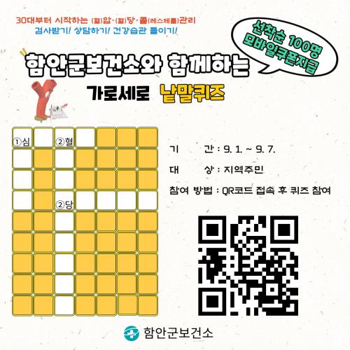 À̹ø Ä·ÆäÀÎÀº ±ºÃ» ¹× º¸°Ç¼Ò ȨÆäÀÌÁö¿¡ ¾÷·ÎµåµÈ À̺¥Æ® ¹è³Ê QRÄÚµå Á¢¼Ó ÈÄ ¸¸¼ºÁúȯ ¹× ½É³úÇ÷°üÁúȯ¿¡ °ü·ÃµÈ °¡·Î¼¼·Î ³¹¸» ÄûÁ ¸ÂÃß´Â ¹æ½ÄÀ¸·Î ÁøÇàµÈ´Ù. Á¤´äÀÚ ¼±Âø¼ø 100¸í¿¡°Ô´Â ¸ð¹ÙÀÏ ÄíÆùÀ» Áö±ÞÇϸç, ´ç÷ÀÚ´Â 10¿ù °³º°¹®ÀÚ¸¦ ¹ß¼ÛÇÒ ¿¹Á¤ÀÌ´Ù.