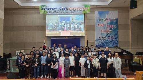 ÇÑÁß ±³Á÷¿øº¹ÁöÇùÀÇȸ ÀÌżº ´ëÇ¥¿Í ½ÅÇö³ª ÀÌ»çÀÇ °øµ¿»çȸ·Î ÁøÇàµÈ À̳¯ ½ÅÀÓ ÀÌ»çÀå ÃëÀÓ ¹× ÀåÇÐ±Ý ¼ö¿©½ÄÀº ¹®°æ¼÷ ±³¼öÀÇ ½Å¸í³ª´Â ÁøµµºÏÃãÀ¸·Î ½ÃÀÛÀ» ¾Ë¸®¸é¼ Çö¿ª°æÂû ¼ÛÀÎ¾ï Æ®·ÎÆ®(³²´ë¹®°æÂû¼ °æ°¨)°¡¼öÀÇ ¿Ã¢À¸·Î ÇлýµéÀÇ ±äÀå°¨À» Ç®¾îÁÖ°í Âü¼®ÀÚ¿¡°Ô´Â Å« Áñ°Å¿òÀ¸·Î ºÐÀ§±â¸¦ ¶ç¿ì¸ç ÁøÇàµÆ½À´Ï´Ù.