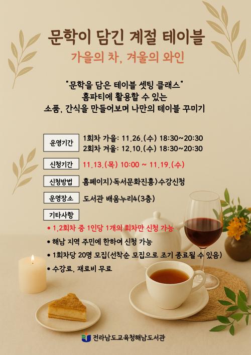 °ÀÇ´Â ÀÛ°¡ÀÌÀÚ Çªµå½ºÅ¸Àϸ®½ºÆ®·Î Ȱµ¿ ÁßÀÎ Á¤ÈñÁ¤ °»ç°¡ ÁøÇàÇÑ´Ù. Âü¿©ÀÚµéÀº ¹®ÇÐ ÀÛǰ¿¡ ´ã±ä À̾߱â¿Í Á¤¼¸¦ Å×À̺í À§¿¡ À籸¼ºÇϸç, À½½Ä°ú °ø°£ ¿¬ÃâÀ» ÅëÇØ ¹®ÇÐÀÇ °¨¼ºÀ» ½Ã°¢ÈÇÏ´Â ½Ã°£À» °®´Â´Ù. À̹ø Ŭ·¡½º¿¡¼´Â °èÀý Å×ÀÌºí ¼ÂÆÃÀ» ÁÖÁ¦·Î °¢ÀÚ¸¸ÀÇ °¨¼ºÀ» ´ãÀº ÀÛǰÀ» ¸¸µé¾îº¸¸ç âÀÇÀû »ç°í¿Í Á¤¼Àû Èú¸µÀ» ÇÔ²² °æÇèÇÏ°Ô µÈ´Ù.