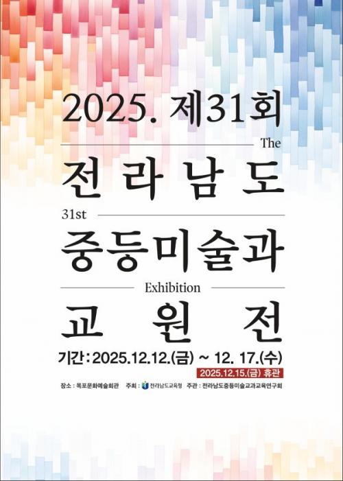 [¿¡ÄÚȯ°æÀϺ¸ Àü³²=À̽ŵ¿±âÀÚ] Àü¶ó³²µµ±³À°Ã»Àº 12ÀϺÎÅÍ 17ÀϱîÁö ¸ñÆ÷¹®È­¿¹¼úȸ°ü 1Ãþ Àü½Ã½Ç¿¡¼­ ¡®2025. Á¦31ȸ Àü¶ó³²µµÁßµî¹Ì¼ú°ú±³¿øÀü¡¯À» °³ÃÖÇÑ´Ù.