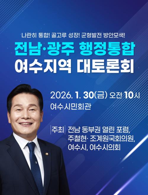 ÀÌ¿¡ ÁÖöÇö¡¤Á¶°è¿ø ±¹È¸ÀÇ¿ø°ú ¿©¼ö½Ã, ¿©¼ö½ÃÀÇȸ, Àü³²µ¿ºÎ±Ç ¿¸°Æ÷·³Àº ¿©¼ö ½Ã¹Î°ú Áö¿ª °¢°èÀÇ ÀǰßÀ» Æø³Ð°Ô ¼ö·ÅÇϰí, ±¤ÁÖ¡¤Àü³² ÇàÁ¤ÅëÇÕÀÇ ÃëÁö¿Í ÃßÁø ¹æÇâ, ¿©¼ö Áö¿ª¿¡ ¹ÌÄ¡´Â ±¸Ã¼Àû º¯È¿Í ÀÌÀÍÀ» °øÀ¯Çϱâ À§ÇØ ¡®Àü³²¡¤±¤ÁÖ ÇàÁ¤ÅëÇÕ ¿©¼öÁö¿ª ´ëÅä·Ðȸ¡¯¸¦ °³ÃÖÇϰíÀÚ ÇÕ´Ï´Ù.