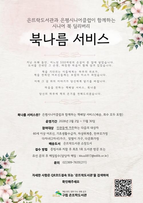 ¡®ºÏ³ª¸§¡¯Àº µµ¼°ü ¹æ¹®ÀÌ ¾î·Á¿î Áø°üµ¿ Áֹο¡°Ô Ã¥À» °¡Á¤À¸·Î ¹è´ÞÇÏ´Â ¼ºñ½º·Î, ÀºÆò½Ã´Ï¾îŬ·´°ú ¿¬°èÇØ Áö¿ª ¾î¸£½ÅÀÌ ¹è´Þ¿¡ Âü¿©ÇÔÀ¸·Î½á µ¶¼º¹Áö ½ÇÇö°ú ³ëÀÎÀÏÀÚ¸® âÃâÀ» ÇÔ²² µµ¸ðÇϰí ÀÖ´Ù.