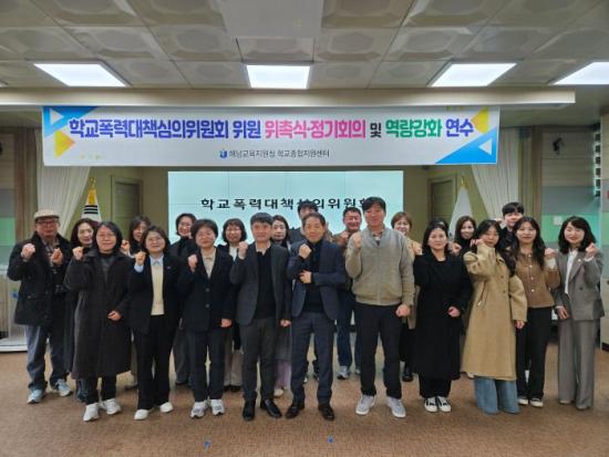 [¿¡ÄÚȯ°æÀϺ¸ Àü³²Çس²=À̽ŵ¿±âÀÚ] ÇØ³²±³À°Áö¿øÃ»Àº 3¿ù 6ÀÏ ÇØ³²±³À°Áö¿øÃ» Çб³Á¾ÇÕÁö¿ø¼¾ÅÍ¿¡¼­ Çб³Æø·Â »ç¾ÈÀÇ °øÁ¤Çϰí Àü¹®ÀûÀÎ ½ÉÀǸ¦ À§ÇØ Çб³Æø·Â´ëÃ¥½ÉÀÇÀ§¿ø À§ÃËÀå ¼ö¿©½Ä°ú ¿ª·® °­È­ ¿¬¼ö¸¦ ¿­¾ú´Ù.