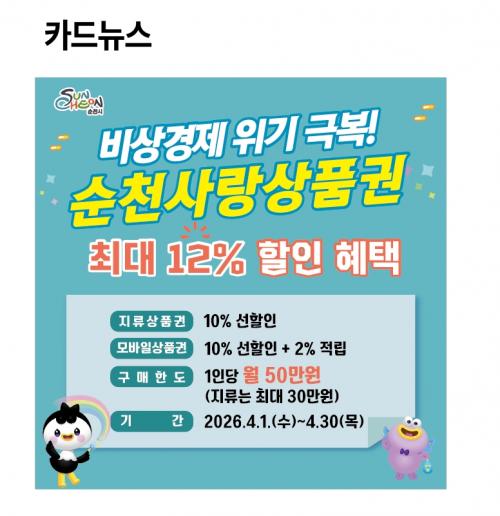 ÇÑÆí, Áö·ù ¼øÃµ»ç¶û»óǰ±ÇÀº ¼øÃµ°ü³» ³óÇùÀ» ÅëÇØ ±¸¸ÅÇÒ ¼ö ÀÖÀ¸¸ç, ¸ð¹ÙÀÏ »óǰ±ÇÀº ¡®Áö¿ª»óǰ±Ç chak(Âø)¡¯ ¾ÛÀ» ÅëÇØ ÃæÀü ¹× »ç¿ëÇÒ ¼ö ÀÖ´Ù. ±âŸ Çà»ç °ü·Ã ÀÚ¼¼ÇÑ »çÇ×Àº ¼øÃµ½Ã ´©¸®ÁýÀ» ÅëÇØ ¾È³»µÈ´Ù.
