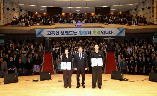 °ø¿µ¹Î ±º¼ö´Â ¡°Ã»·Å°ú Ä£ÀýÀº °íÈﱺÀÇ ÇÙ½É °¡Ä¡ÀÌÀÚ ±º¹Î°úÀÇ ¾à¼Ó¡±À̶ó¸ç ¡°°£ºÎ °ø¹«¿øºÎÅÍ Àü Á÷¿ø±îÁö ÀÏ»ó ¼Ó ½ÇõÀ» ÅëÇØ û·Å°ú Ä£ÀýÀ» °íÈïÀÇ ´ëÇ¥ ºê·£µå·Î ¸¸µé¾î °¡¾ß ÇÑ´Ù¡±°í °Á¶Çß´Ù. ÀÌ¾î ¡°±º¹ÎÀÌ Ã¼°¨ÇÒ ¼ö ÀÖ´Â º¯È·Î À̾îÁú ¼ö ÀÖµµ·Ï Áö¼ÓÀûÀ¸·Î ³ë·ÂÇϰڴ١±°í µ¡ºÙ¿´´Ù.