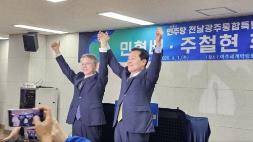 ÁÖöÇö¡¤¹ÎÇü¹è µÎ È帴 ¡°¼öµµ±Ç ÀÏ±Ø Ã¼Á¦¸¦ ³Ñ¾î Àü³²°ú ±¤ÁÖÀÇ ´ëµµ¾àÀ» ¹Ýµå½Ã ÀÌ·ï¾ß ÇÑ´Ù´Â Àý¹ÚÇÔÀ¸·Î ¼ÕÀ» ¸ÂÀâ¾Ò´Ù¡±¸ç ´ÜÀÏÈ ¹è°æÀ» ¼³¸íÇß´Ù. ÀÌ¿¡ µû¶ó ÁÖöÇö È帴 ¹ÎÇü¹è È常¦ ÇâÇÑ ÀüÆøÀûÀÎ ÁöÁö¸¦ ¼±¾ðÇϸç Èĺ¸Á÷À» ³»·Á³õ¾Ò´Ù.