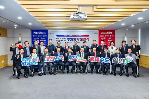 [¿¡ÄÚȯ°æÀϺ¸ °æ³²ÇÔ¾È=À̽ŵ¿±âÀÚ] °æ»ó³²µµ¿Í ÇԾȱºÀº Áö³­ 15ÀÏ °æ»ó³²µµÃ» µµÁ¤ ȸÀǽǿ¡¼­ ¢ßÄÚ¸¸°ú 152¾ï ¿ø ±Ô¸ðÀÇ ÅõÀÚÇù¾à(MOU)À» ü°áÇß´Ù°í ¹àÇû´Ù.