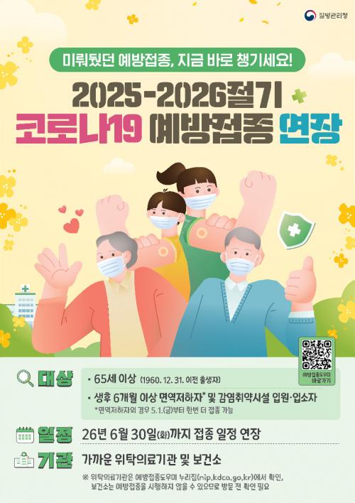 Á¢Á¾ ´ë»óÀº ¡®2025-2026Àý±â Äڷγª19 ¹é½Å(LP.8.1)¡¯À» ¾ÆÁ÷ Á¢Á¾ÇÏÁö ¾ÊÀº °íÀ§Ç豺À¸·Î ¡ã65¼¼ ÀÌ»ó ¾î¸£½Å ¡ã¸é¿ªÀúÇÏÀÚ ¡ã°¨¿°Ãë¾à½Ã¼³ ÀÔ¿ø¡¤ÀÔ¼ÒÀÚ´Ù.